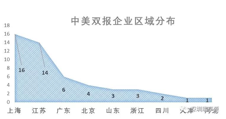 从企业总部的地理位置分布看,上海、江苏两地企业占据半壁江山。作为中国生物医药企业的聚集地,众多海归科学家在此扎根创业,这样的数据在意料之中的同时,也体现了两地企业较高的创新水平。广东和北京属于国内经济发展较快的区域,同样聚集了较多的创新企业,也有多个产品参与中美双报。