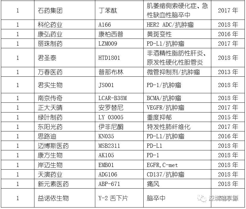 另一方面,中美双报数量增加也与国内药品监管制度改革有一定关系。2015年开始的药审改革,释放了国内企业的创新活力,审评审批速度加快,有利于国内公司在中美两地同时获得批件,开展国际多中心临床研究。2017年中国加入ICH以及随后发布的数据互认,进一步给中美双报创造有利条件,2018年产品数量到达新的高峰(2019年还没有完整数据),与政策变化有较大关系。