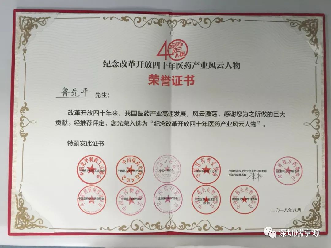 鲁先平博士获“改革开放40年医药产业风云人物”表彰